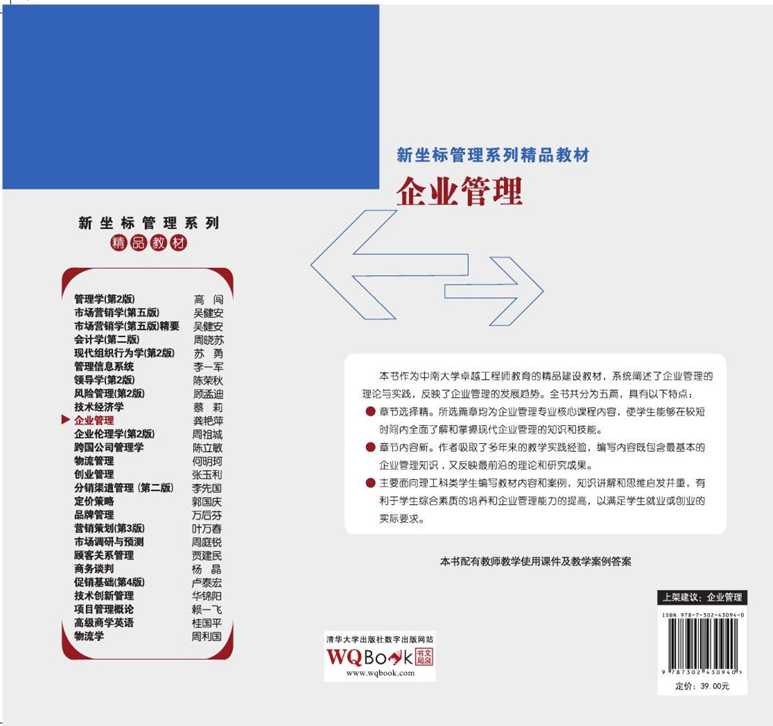本书作为中南大学卓越工程师教育的精品建设教材,系统阐述了企业管理的理论与实践,反映了企业管理的发展趋势。全书共分为五篇,具有以下特点:(1)章节选择精。所选篇章均为企业管理专业核心课程内容,使学生能够在较短时间内全面了解和掌握现代企业管理的知识和技能。(2)章节内容新。作者吸取了多年来的教学实践经验,编写内容既包含最基本的企业管理知识,又反映最前沿的理论和研究成果。(3)主要面向理工科类学生编写教材内容和案例,知识讲解和思维启发并重,有利于学生综合素质的培养和企业管理能力的提高,以满足学生就业或创业的实际要求。