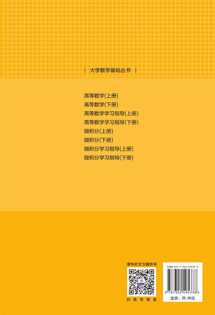 本书由数学教师结合多年的教学实践经验编写而成.本书编写过程中遵循教育教学的规律,对数学思想的讲解力求简单易懂,注重培养学生的思维方式和独立思考问题的能力.每节后都配有相应的习题,习题的选配尽量典型多样,难度上层次分明,使学生能够掌握数学方法并运用所学知识解决实际问题.书中还对重要数学概念配备了英文对照词汇. 全书分上、下两册出版,本书为下册.下册主要包括: 多元函数微分学及其应用,重积分,无穷级数,常微分方程等内容.全书把微积分和相关经济学知识有机结合,内容的深度广度与经济类、管理类各个专业的微积分教学要求相符合.本书可供普通高等院校经济类、管理类、理工类少学时各专业作为教材使用,也可以供学生自学使用.