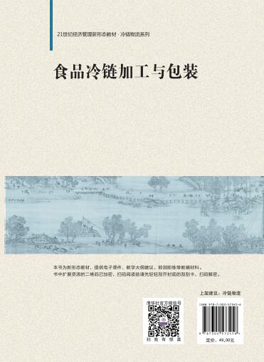 前言 〖3〗 食品是一种特殊的商品,不管是生鲜农产品、加工食品还是药品生物制剂,都具有鲜活性、保质性和易腐性等特点,易受温度等外界环境条件的影响,需要在适当的条件下储藏和运输。随着社会经济的发展和人民生活水平的提高以及人民消费观念的变化,越来越多的人开始注重食物的安全、品质及营养等要素,对其要求也越来越高。但是,一些新鲜食品的原辅料、产品加工产区,远离消费人群的居住地区,必须通过物流或冷链物流来满足其新鲜要求,冷链物流应运而生,食品或者农产品的生产、储藏、运输、销售、配送到消费前各环节,都可以控制在一定的温度下,防止食品的腐败以及营养损失。因此,冷链加工、冷链物流越来越对食品卫生安全保障、食品质量品质提升、人们生活质量及幸福感的提高起到关键作用。 基于长期从事食品加工、质量安全控制、冷链物流管理的教学与研究工作,以及近年来为食品生产业、冷链物流行业及组织进行咨询和规划所积累与沉淀的相关实践经验,我们编写了本书。本书主体结构设计了8章内容,包括冷链食品及其特性、冷链食品加工与技术原理、冷链食品加工技术的应用、冷链食品的包装与技术原理、冷链食品包装技术的应用、冷链食品加工及包装的安全性、冷链食品加工与包装设施、冷链食品加工与包装的质量控制。此外,为更好地了解和掌握冷链食品加工与包装的理论体系,本书收集整理了冷链食品加工与包装领域最新的经典案例,以便于教学使用。 本书主要特色如下。 (1) 在全面阐述冷链食品的种类、特性、加工及包装技术原理及其应用的基础上,注重学生实践应用与操作能力的培养,具有极强的实用性和实战性。 (...