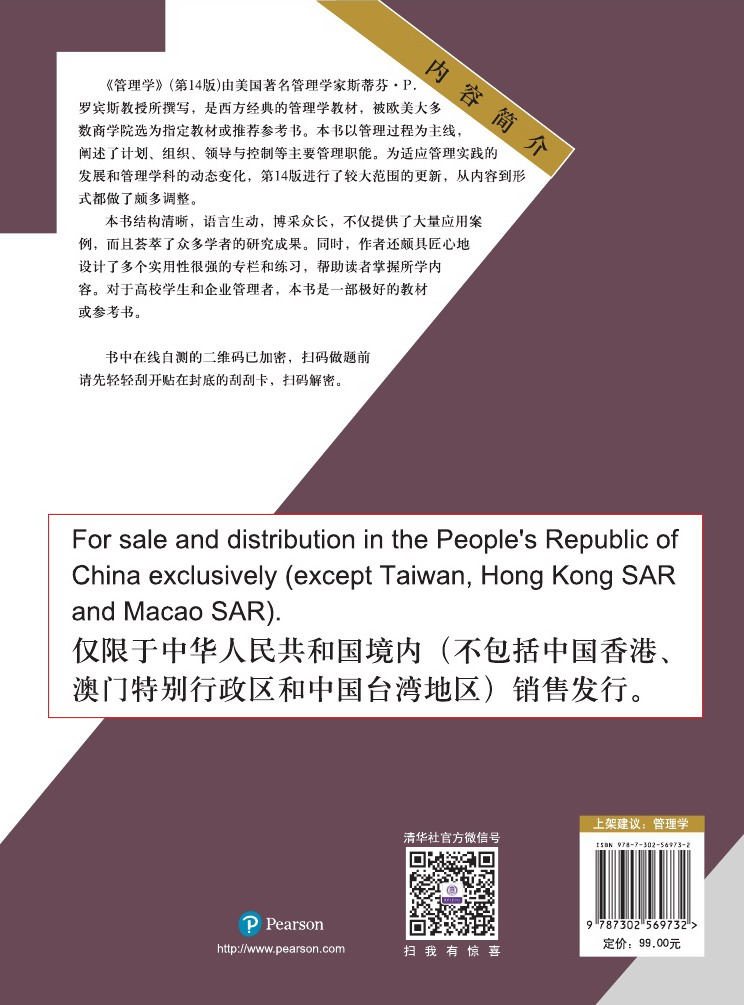 《管理学》由美国著名管理学家斯蒂芬?P. 罗宾斯教授所撰写,是西方经典的管理学教材,被欧美大多数商学院选为指定教材或推荐参考书。本书以管理过程为主线,分别阐述了管理的主要职能:决策、计划、组织与领导。为适应管理实践的发展和管理学科的动态变化,第12版进行了较大范围的更新,从内容到形式都做了颇多调整。 本书结构清晰,语言生动,不仅提供了大量的应用案例,而且荟萃了众多学者的研究成果。同时,作者还颇具匠心地设计了多个实用性很强的专栏和练习,帮助读者掌握所学内容。