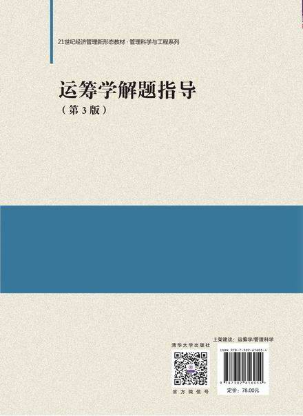 前言(第3版) 运筹学是高等学校经济管理类和理工类部分专业的基础课,也是这些专业硕士或者博士研究生入学考试的一门考试科目,同时又是参加各种大学生数学建模竞赛的必备知识。清华大学出版社出版的《运筹学》(《运筹学》教材编写组编)一直以来被国内高校广泛采用为教材。2021年出版了《运筹学》(第5版),2022年又出版了《运筹学: 本科版》(第5版)。为了帮助广大同学扎实掌握运筹学的精髓和解题技巧,提高解答各种题型的能力,我们根据清华大学出版社的《运筹学》(第5版)和《运筹学: 本科版》(第5版),在《运筹学解题指导》(第2版)的基础上,编写了此书。 全书各章按照以下五个部分编排。 1. 本章学习要求: 给出了本章应该掌握的基本知识点。 2. 主要概念及算法: 凝练了本章基本概念和主要算法思想,突出了必须掌握、考试中出现频率高、数学建模应用多的核心知识点、模型、方法和结论。 3. 课后习题全解: 教材课后习题层次多、内容丰富,从各个角度体现了基本概念和主要算法的应用,因此,我们对全部课后习题给出了详细的解答。 4. 典型例题精解: 紧扣教材主要内容,精选各类习题并给出了详细解答。 5. 考研真题解答: 结合本章的主要内容,精选历年研究生入学考试试题,帮助同学们加深对知识点的理解与运用。 另外,附录中还提供了部分高校研究生入学考试运筹学试题真题及参考答案,通过成套真题,帮助同学们综合复习和灵活运用运筹学的知识点。 本书由周华任、陈玉金、蔡开华、郭杰、徐兵、马凤丽、马茹飞,周梦、谭镇鹂编写。在本书的策划、编写过程中,《运筹学》教材编写组中的钱颂迪、陈秉正、王光辉...