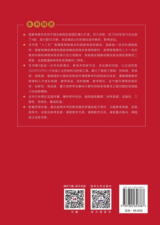 本书是计算机控制领域的经典教材,自1999年出版至今共出版了4版,发行量超过50万册,已被近300所高校选作教材,产生了巨大影响。