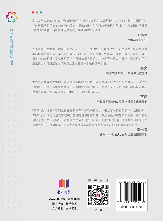 科技革命本质上颠覆的是科技创新的范式。为了在未来全球科技竞争中形成新优势,必须遵循智能时代科技创新的新范式。本书以范式作为分析不同时代科技创新的逻辑构架,预见了智能时代科技创新的主导范式,并基于中国的战略目标、主要任务以及人工智能技术的冲击影响,分析了其科技创新的合理范式结构;基于抢占智能科技创新制高点目标,研究了新兴前沿技术研发战略及产业化模型,结合案例给出了研发管理及产业化措施;基于智能时代科技创新的生态化特征,提出了构建全球链接的创新生态以及与时俱进创新能力的对策建议。本书面向从事科技创新实践和管理的所有人员,包括高等学校师生,政府和企业科技管理、战略规划人员,以及科技创新创业、战略管理等学科的研究人员。
