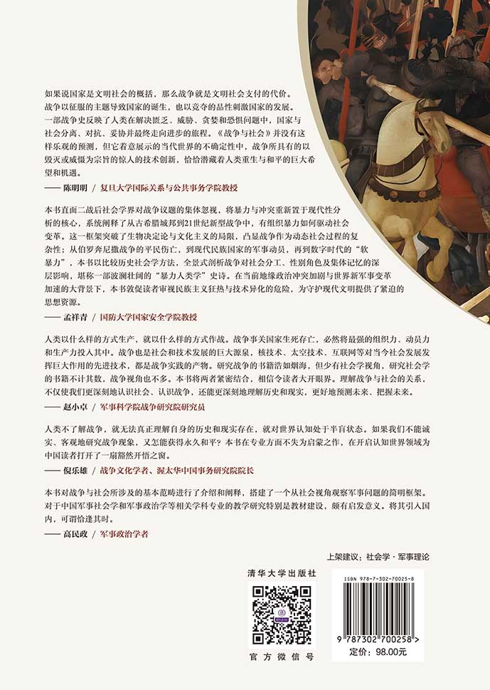 "本书是普林斯顿大学的米格尔·森特诺(Miguel Centeno)教授和他当时的学生埃莱娜·恩里克斯(Elaine Enriquez)共同撰写的一本著作,主要分析了战争的起源、历史发展及其对个人和社会的影响,并运用历史比较法考察了美国、欧洲、日本等国家的战争发展历程,以及战争如何反映和塑造社会动态和制度,提出了诸多发人深省的社会学见解。从社会学的视角理解战争,有助于认识战争这一特殊形式的社会行动的复杂性:战争并非如很多人想象的,是理性计算收益**化的结果,其中掺杂了很多容易被忽视的非理性因素。 本书短小精悍、可读性强,既可作为普通民众的入门读物和畅销读物,也可作为战争社会学、政治社会学、军事社会学和相关学科学生的专业教材和参考书。"