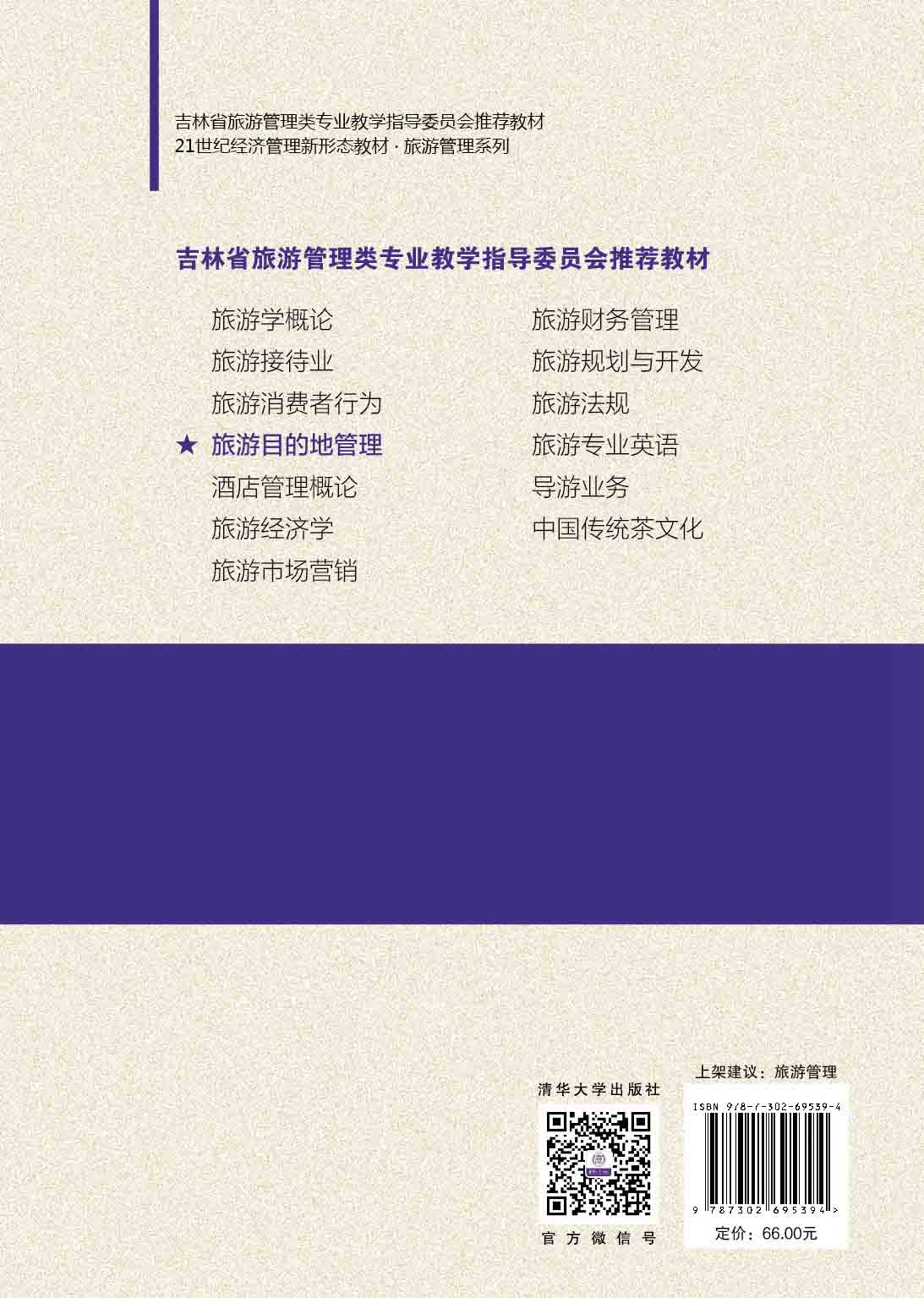 "《旅游目的地管理》是吉林省旅游管理专业教学指导委员会推荐教材,依据教育部颁布的《旅游管 理类教学质量国家标准》编写。旅游目的地的建设与管理是我国旅游学研究和旅游业发 展实践中的重要课题之一。 本书以旅游目的地吸引力为核心,构建旅游目的地管理的知 识体系。本书从社区管理到服务管理,从形象塑造到营销策略,再到节事活动、信息化 与智慧旅游、危机应对、竞争力提升、环境与可持续发展,以及趋势与挑战等,引导读 者系统认识旅游目的地管理的内容。 本书可作为高等院校旅游管理、人文地理与城乡规划、地理科学等专业的教学用书, 也可作为旅游企业及相关从业人员的参考书。"