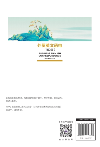 一转眼,《外贸英文函电》已经问世六年了。在这六年中,新经济快速发展,信息技术取得了长足进步,移动互联网、大数据、社交网络、人工智能、VR/AR等技术正在改变着社会的运行方式以及我们的生活方式、学习方式。随着数字化时代的到来,高校教师应该如何以教书育人的初心,培养面向未来的人才?为回应此问题,开展融知识传授、价值塑造和能力培养为一体的新文科教育模式势在必行。 习近平总书记在党的二十大报告中指出:“必须坚持科技是第一生产力、人才是第一资源、创新是第一动力,深入实施科教兴国战略、人才强国战略、创新驱动发展战略,开辟发展新领域新赛道,不断塑造发展新动能新优势。”教育部部长怀进鹏也在2023年全国教育工作会议上强调,要以习近平新时代中国特色社会主义思想为指导,坚持守正创新,在教材中充分反映马克思主义立场观点方法,充分反映中华民族灿烂文化、民族精神、时代精神和党的百年奋斗重大成就、历史经验,打好中国底色、厚植红色基因,紧密对接国家战略需求,善用现代信息技术,真正把“培根铸魂、启智增慧”融入好、落实好。如何用习近平新时代中国特色社会主义“培根铸魂、启智增慧”?教材无疑是核心载体。新时代的高校教育,需要以信息技术为工具、以课程思政为引领,培养建设国家所需要的既有扎实的理论基础,又有较强的问题解决能力,更有家国情怀的新时代大学生。 一、本书的特色 1. 数字体系新形态。本书以纸质教材为核心,联结在线课程和课堂教学,构建“在线课程、纸质教材、课堂教学”三位一体的新形态课程体系,纸质教材更精要,数字资源更丰富,线上线下学习相联通。 2. 教学方式新形态。采取线上线下混合式教学方式,以学习...