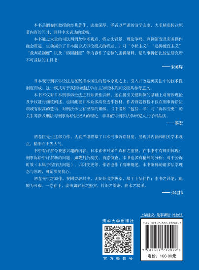 "本书作者酒卷匡为早稻田大学教授,担任司法考试审查委员、大法院司法修习委员会委员长、法制审议会刑事法部会长等。致力于研究日本《刑事诉讼法》的解释适用、犯罪侦查和刑事审判、及陪审员制度运用的各种问题。 本书是酒卷匡的代表性著作,一经出版即引起学界的广泛关注,目前**版次是2020年的第二版。本书以通识性的语言全面、系统地介绍了日本刑事诉讼法的基本原理,包括立法框架、程序架构、设计机理等内容。因为中国和日本同为大绿大陆法系国家,在刑事诉讼法典的条文设计、机构设置和程序衔接方面有较多的相通之处,本书的相关内容可以为我国刑事诉讼法学界提供重要参考。"