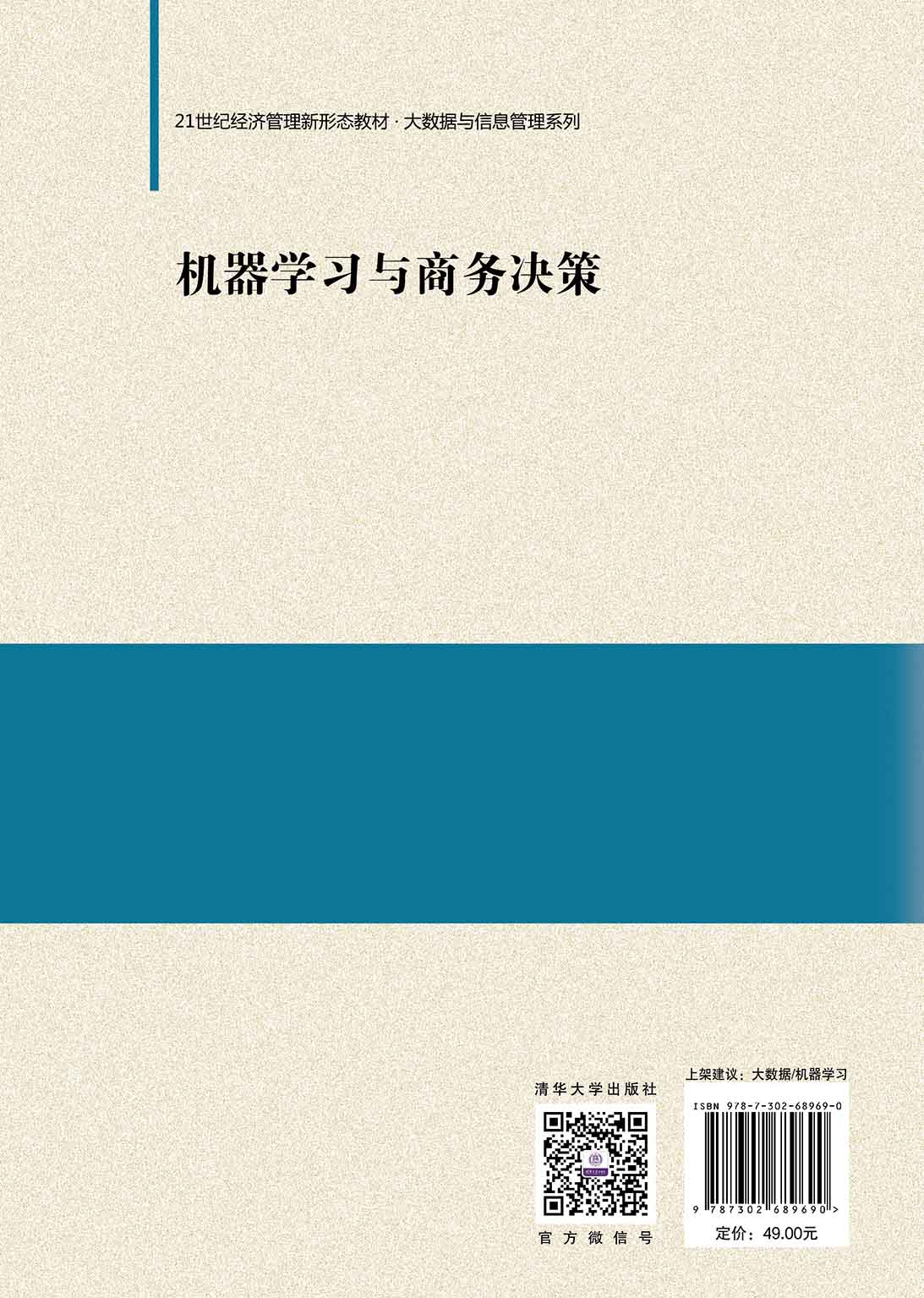 "本书是作者多年在人工智能领域中运用机器学习实战经验的理解、归纳和总结,旨在将机器学习理论与商务决策实践相结合,以较小的编程代价实现商务决策应用。本书共分7章,内容包括回归模型、分类模型、集体学习、无监督学习、神经网络等模型和算法的概念及原理。为了帮助读者更好地运用机器学习解决商业决策中出现的问题,本书选择Kaggle竞赛经典商务案例,运用Python语言解决案例中的问题,使读者既能理解处理问题背后的原理和思路,又能学习实际解决问题的方法和过程。 本书可以作为高校大数据管理与应用、管理科学与工程、计算机科学及相关专业大学生或研究生的教材,也可以作为机器学习爱好者的参考用书。 "