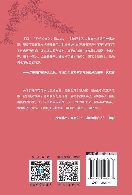 《诗经》中的诗篇题材灵活,风格多样,其影响贯穿中国古代诗歌史,甚至整个中国文学史。《给孩子讲<诗经>》选择了七十二首比较典型、广为传唱的诗歌进行讲解,约占《诗经》全文的四分之一。讲解由“导读”“原文”“注释”“解说”“思考”五部分构成。针对中小学生掌握的字词量,力求做到“生字尽注”“生词尽释”,让孩子从中感受语言的韵律美。雅致恬淡的动植物水墨画插图,让孩子深化对名篇的理解。图文并茂的形式,深入内心的解读,让孩子提升综合素养,汲取灵感与力量,获得美育和启迪。
