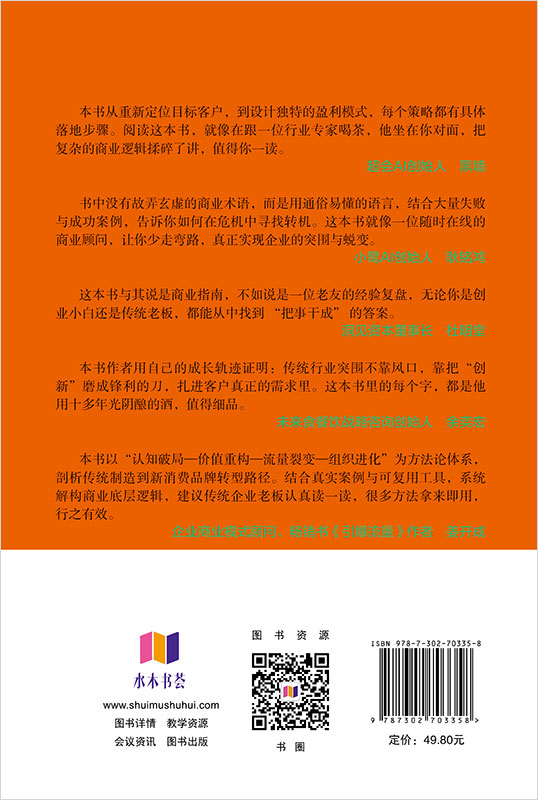 无论是创始人IP打造、组织裂变策略,还是穿越周期的长期主义实践,本书均以实际案例解析操作细节,提供从认知破局到战略落地的全流程解决方案,适合身陷价格战泥潭、寻求转型突破的中小企业主及创业者,是一部兼具商业洞见与实操价值的破局图书。同时也可作为全国高校经济管理类专业学生的学习教材。