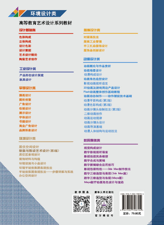 "本书系统介绍了软装与陈设艺术设计的理论框架与实践体系,以色彩理论为核心切入点,结合约翰内斯·伊顿的艺术色彩体系,深入解析色彩在空间感知与情感表达中的作用,并通过现代简约、新中式等不同设计风格的案例展现色彩的应用策略。全书涵盖十大主流设计风格解析、六大核心软装元素设计方法论,系统阐述从家具布局到花艺搭配的空间设计逻辑,强化对学生设计思维与项目管理能力的培养。 本书的特色在于理论与实践深度融合,通过国内外优秀案例库直观呈现设计逻辑,既满足环境设计、室内设计等专业教学需求,也为艺术设计爱好者提供系统化入门指导。本书以培养学生的审美能力、创新意识与应用技能为目标,构建兼具科学性与实践性的教学框架。本书适合高等院校艺术设计相关专业学生及相关从业者学习,也适合设计爱好者自学。 "