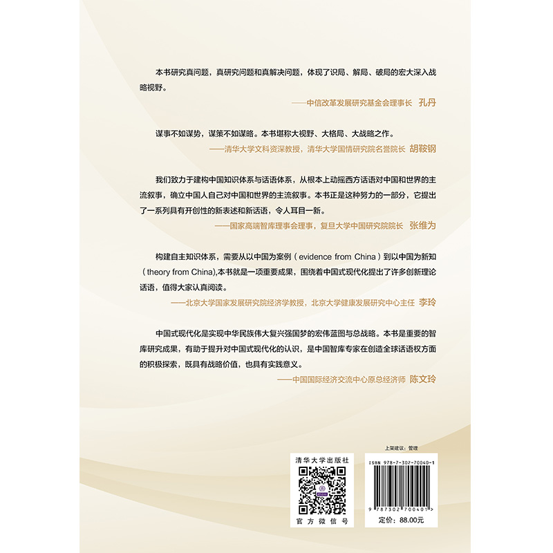 3.到2035年,我们要实现基本的现代化,这个过程分为三步:“十四五”开局、未来十年的“十五五”突破、“十六五”攻坚。 4.本书是与时代同行、和政策互动的产物。本书提出了“现代化的八个中国式”“六个现代化”“综合制权对抗”“大连横VS大合纵”“消长战略”“吕底亚陷阱”“需求侧经济学”“从GDP中心到GNW中心”“全健康发展观”“推进输入端和输出端结合的民主”“四有良治”“韧性社会”“未来化”“虚拟域治理现代化”“以道驭器”“文明型现代化”等大战略的新表述、新构想,希望能够在这个历史大变局时刻,对未来做一个战略瞭望。"
