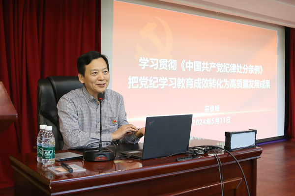 宗俊峰以“学习贯彻《中国共产党纪律处分条例》 把党纪学习教育成效转化为高质量发展成果”为题讲纪律党课,首先领学了习近平总书记关于党的纪律建设的重要论述和在二十届中央纪委三次全会上的重要讲话精神,解读了《中国共产党纪律处分条例》新增或修改的重点条文。宗俊峰传达了《清华大学开展党纪学习教育的实施方案》要求,就开展学习、警示教育、党员集中培训等做了详细部署,并结合出版社运用“第一种形态”相关情况、出版领域存在的意识形态问题等,剖析典型案例,开展警示教育。宗俊峰强调,要把开展党纪学习教育作为重要政治任务,将学党纪与促发展紧密结合起来,在落实全面从严治党主体责任,加强内部制度体系建设,构建分层次、多形式、全覆盖的培训体系等方面下功夫,切实把党纪学习教育成效转化为高质量发展成果。