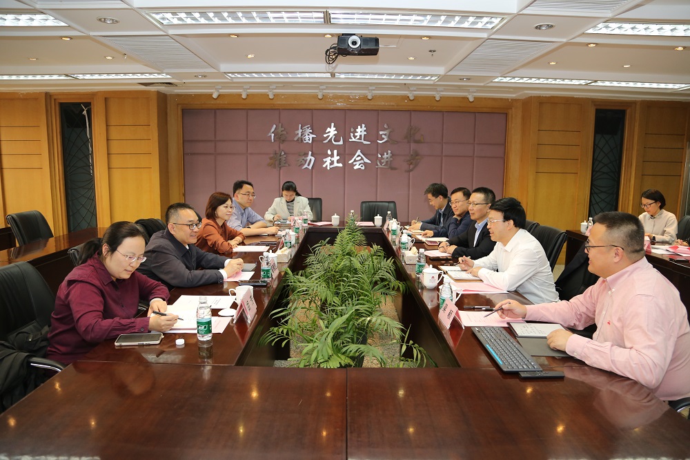 10月12日下午,北京市委宣传部副部长、北京市新闻出版局(北京市版权局)局长翟德罡一行到出版社调研指导工作。海淀区委宣传部部长齐慧超、北京市委宣传部出版处副处长胡芳、海淀区委宣传部副部长张东旭、海淀区文化发展促进中心文化产业促进科科长顾晓妍陪同调研。清华社党委书记、董事长邱显清,总编辑卢先和出席调研座谈会。