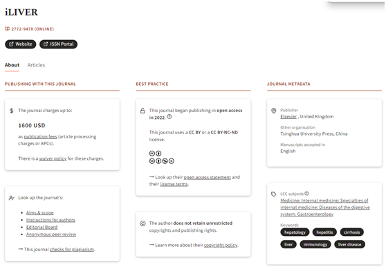 2025年1月10日,iLIVER《国际肝胆健康(英文)》正式收到通知,已通过著名国际开放获取期刊数据库DOAJ(https://doaj.org/)的评估,正式被收录!