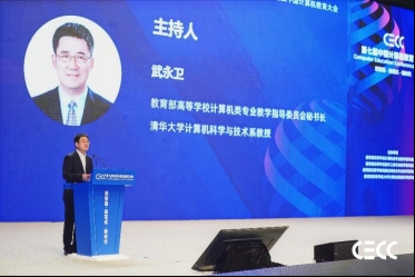 ▲ 大会程序委员会主席、教育部高等学校计算机类专业教学指导委员会秘书长、清华大学计算机科学与技术系教授武永卫主持