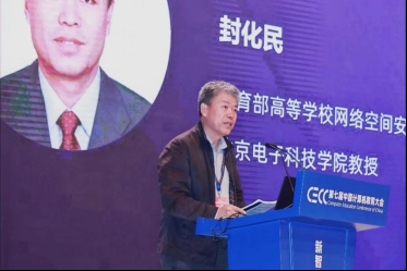 ▲教育部高等学校网络空间安全专业教学指导委员会秘书长、北京电子科技学院教授封化民主持大会报告环节