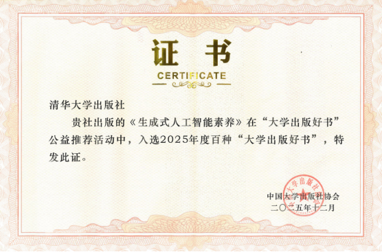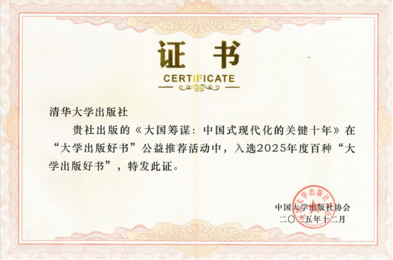 12月13日,中国大学出版社协会发布2025年度百种“大学出版好书”入选书目,清华大学出版社出版的《大国筹谋:中国式现代化的关键十年》和《生成式人工智能素养》入选2025年度百种“大学出版好书”。