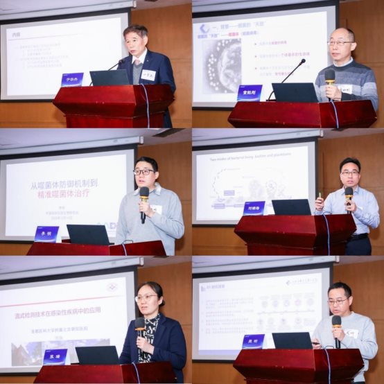 在主题报告环节,于学杰带来《SFTSV流行病学与宿主免疫逃逸》的专题分享;童贻刚、李明、刘锦涛分别以《基于AI结构模拟的噬菌体工程化改造提升噬菌体治疗的靶向性》《从噬菌体防御机制到精准噬菌体治疗》《细菌生物被膜的噬菌体抗性》为题作主题报告;张瑞分享了流式监测技术在感染性疾病中的应用;周昕所作的主题报告则为通用流感疫苗带来新思路。